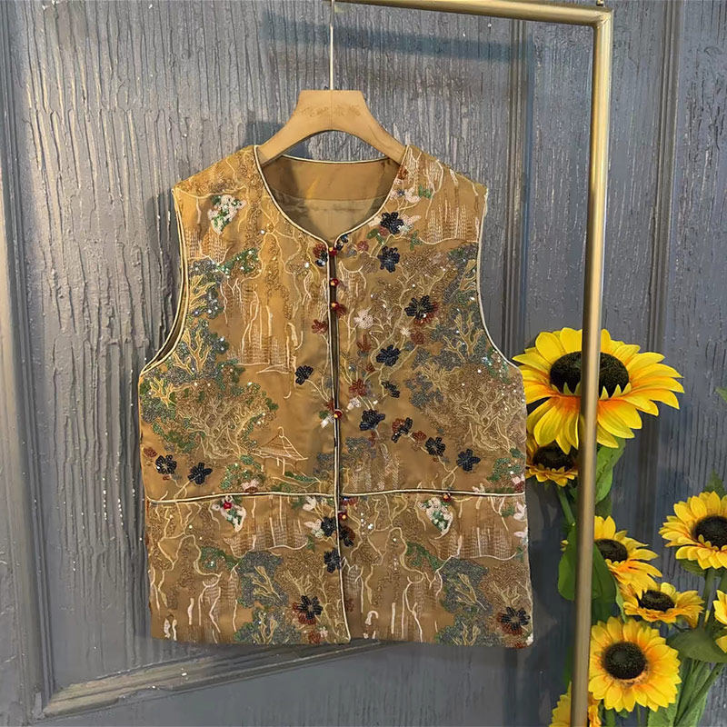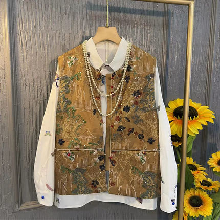 立领刺绣花朵国风马甲衬衫