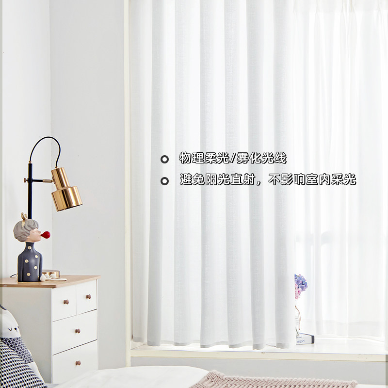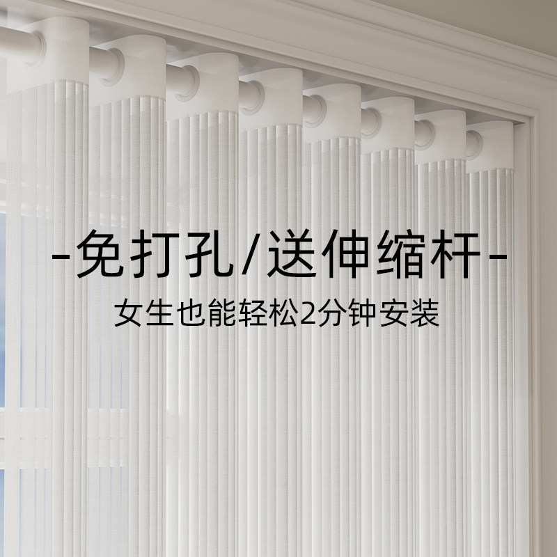 白纱窗帘竖百叶纱帘透光不透人白色梦幻影纱免打孔安装带杆一整套