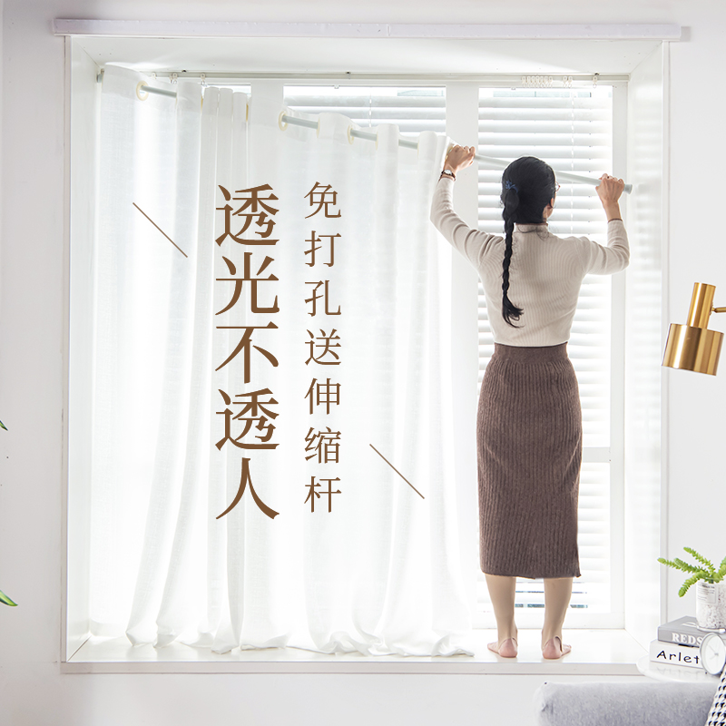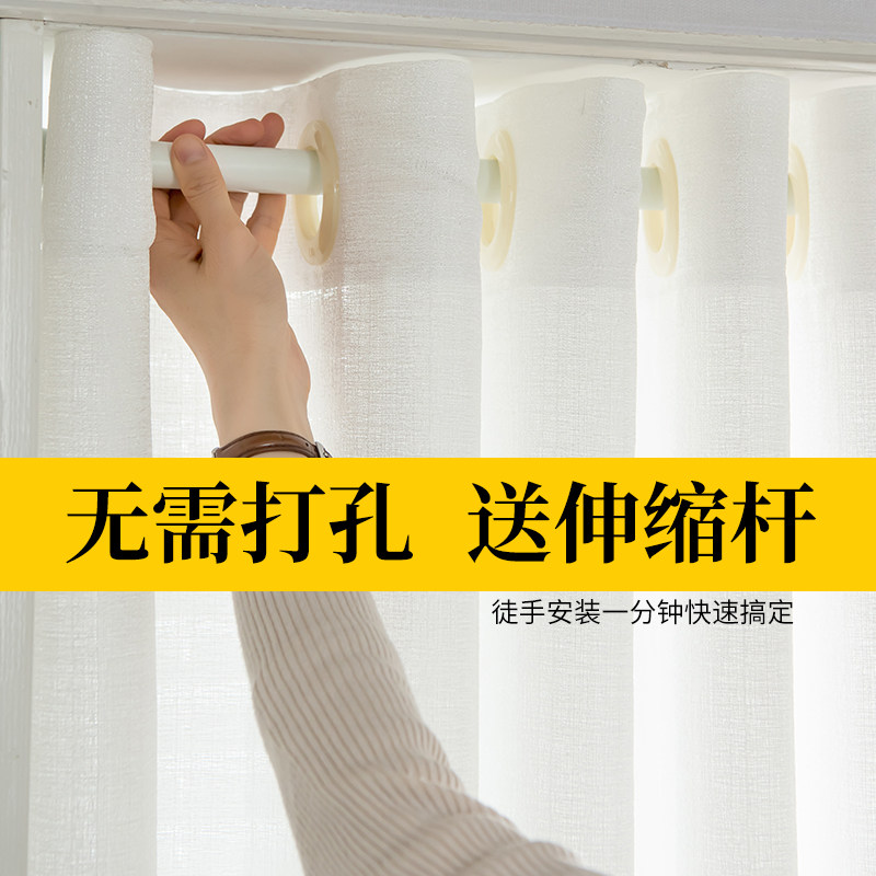 白纱窗帘免打孔安装带杆一整套