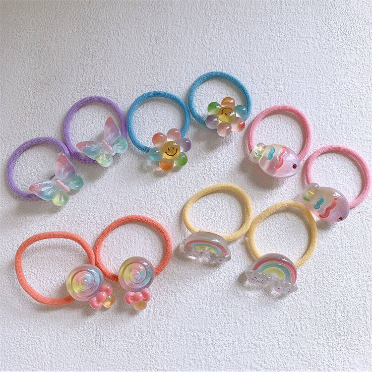 新款儿童彩虹花朵蝴蝶发圈小女孩扎头发皮筋发绳可爱卡通头绳发饰