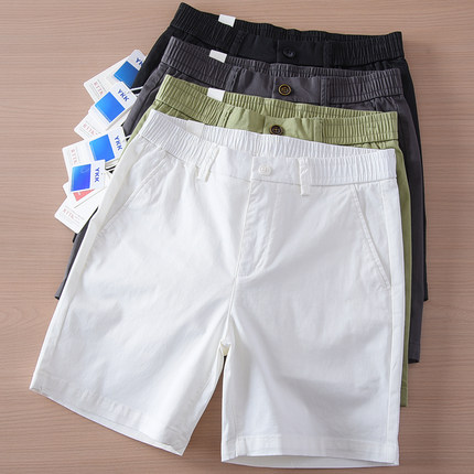 2025夏季新款薄款透气纯棉四分三分休闲短裤男弹力松紧腰白色短裤