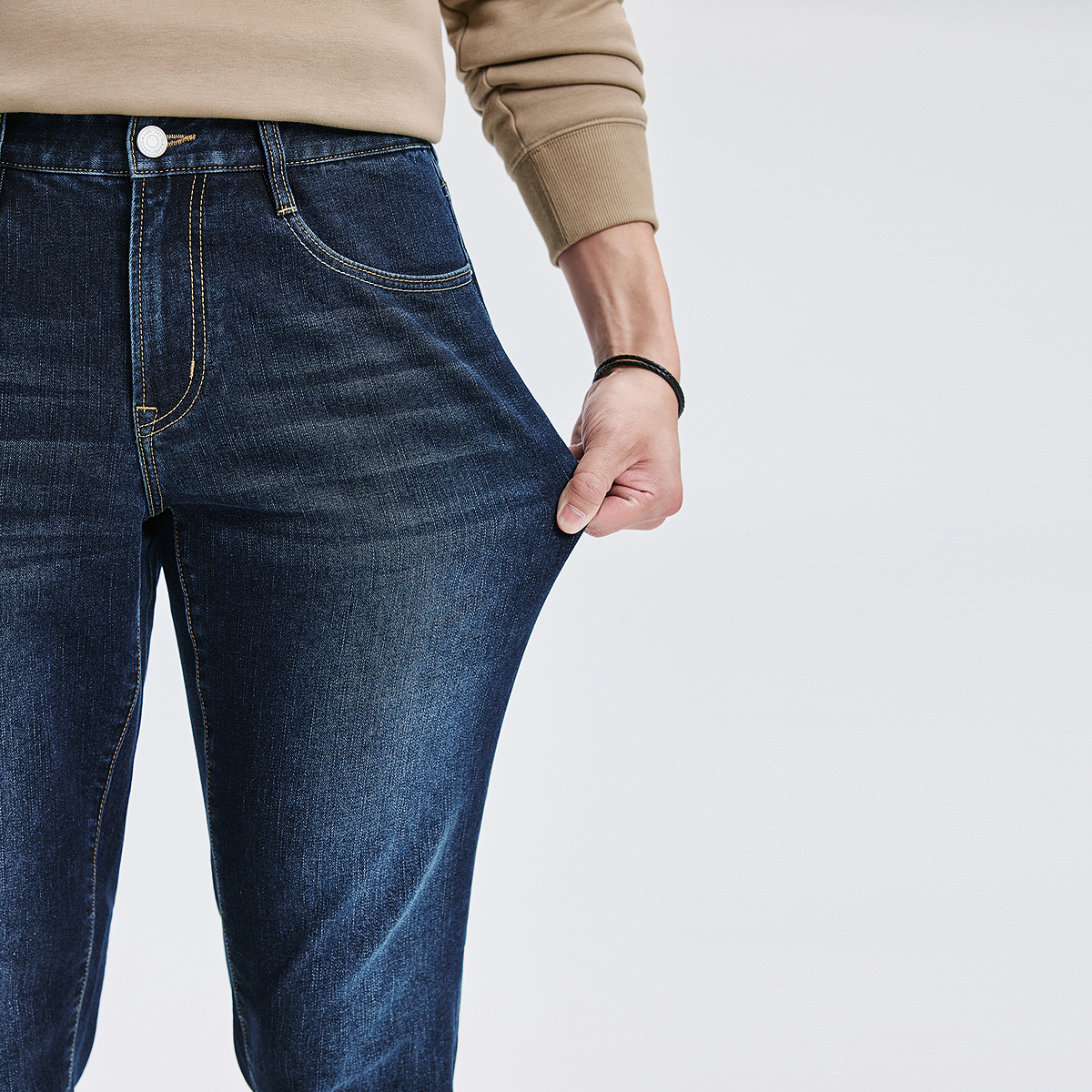 七匹狼弹力牛仔裤男裤马骝水洗后袋印绣花牛仔长裤男士休闲商务