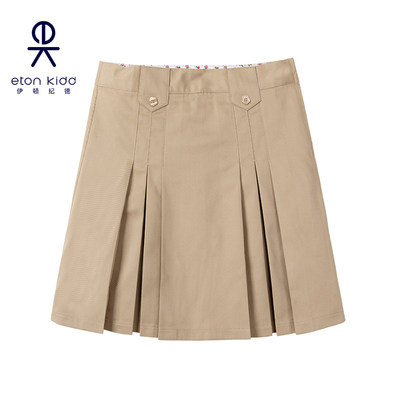 伊顿纪德校服纱卡短裙新款女童卡其半身裙(无内衬21Q201预