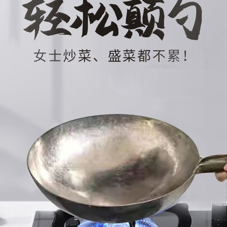 纯钛炒锅家用不粘锅轻便无涂层大号加厚燃气灶适用圆底炒菜锅钛锅
