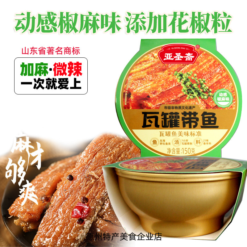 亚圣斋瓦罐带鱼150g红烧酥鱼五香海鲜食品香辣椒麻味即食下饭酒菜