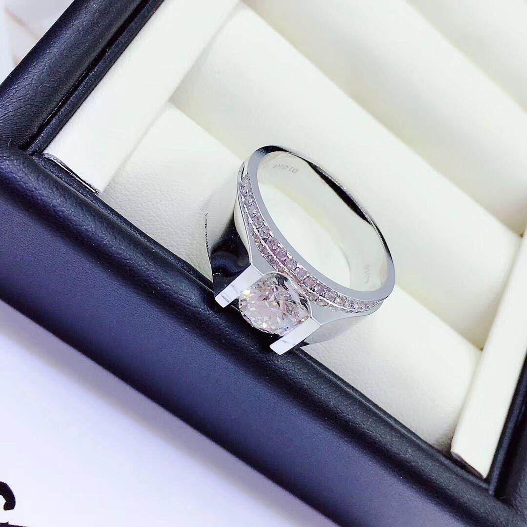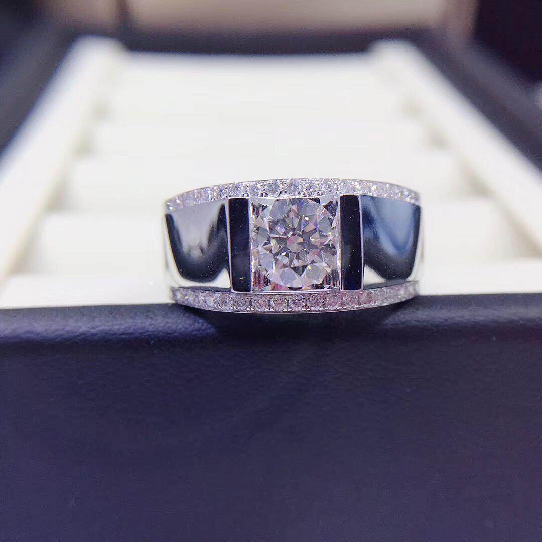 男士时尚霸气镀925银硞石镶钻戒指男朋友帅气绅士结婚钻戒礼物
