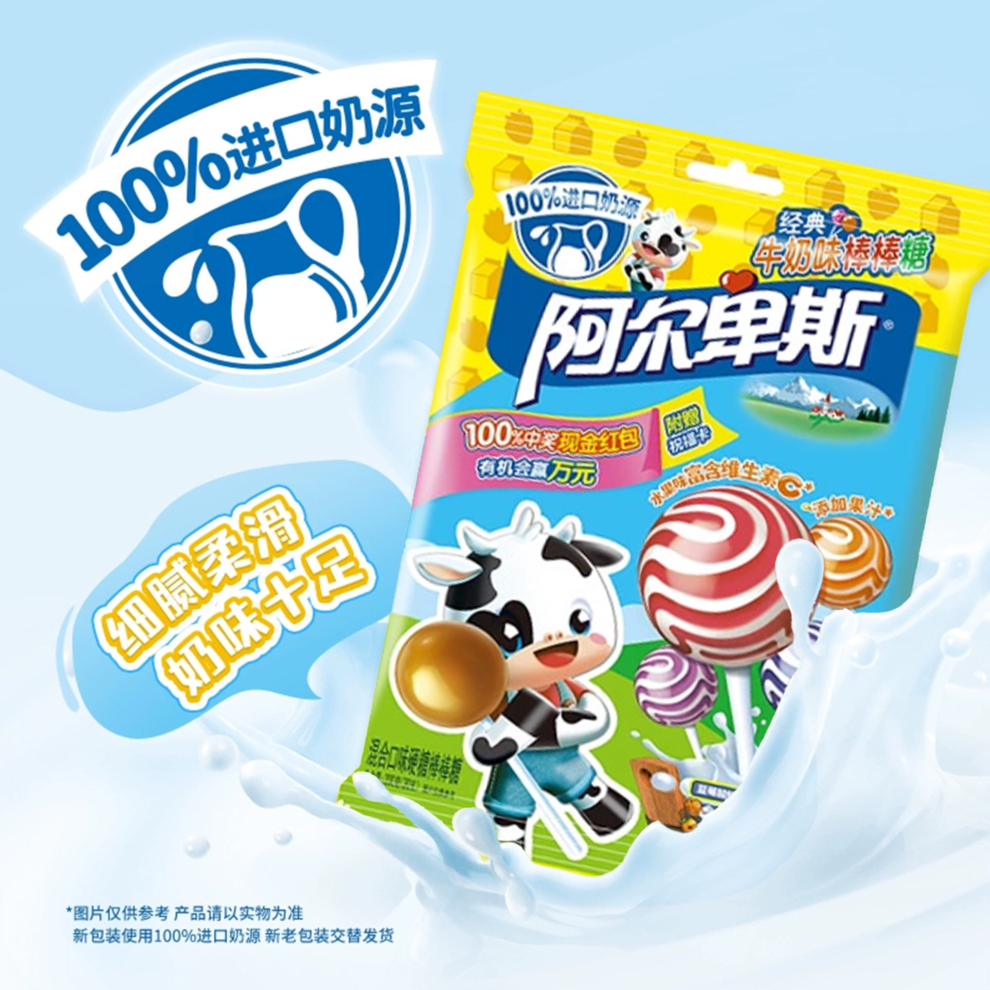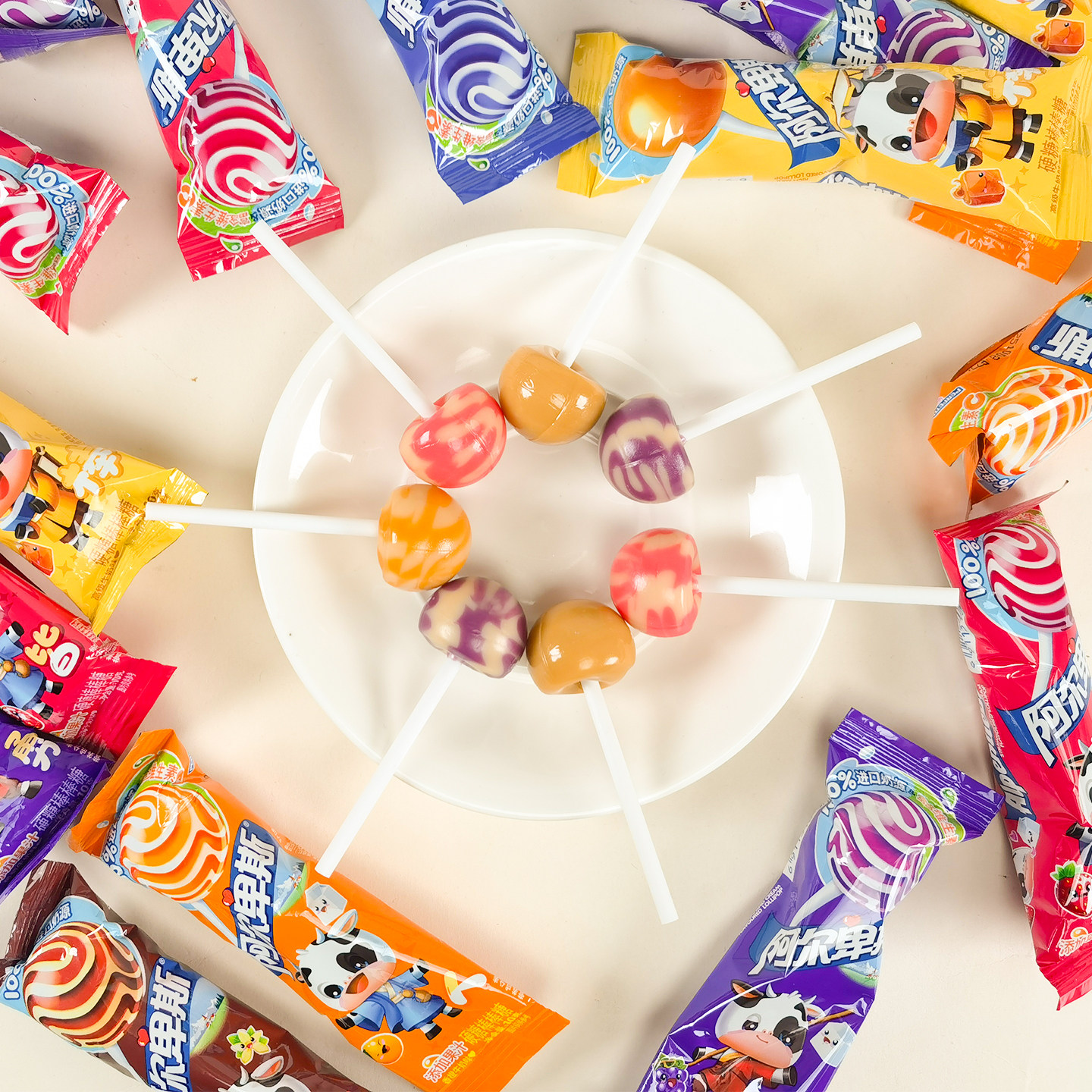 阿尔卑斯棒棒糖96支挂板装混合口味硬糖儿童校园糖果零食散装批发