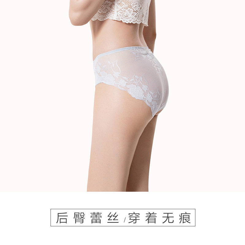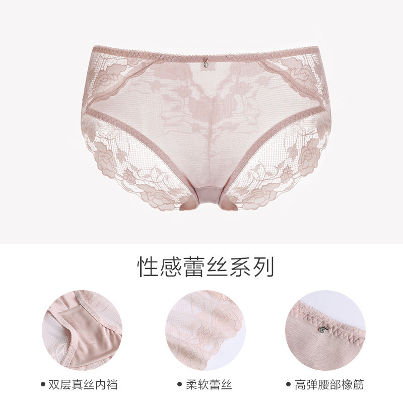 金三塔真丝透气无痕内裤女性感蕾丝边桑蚕丝中腰提臀三角裤头
