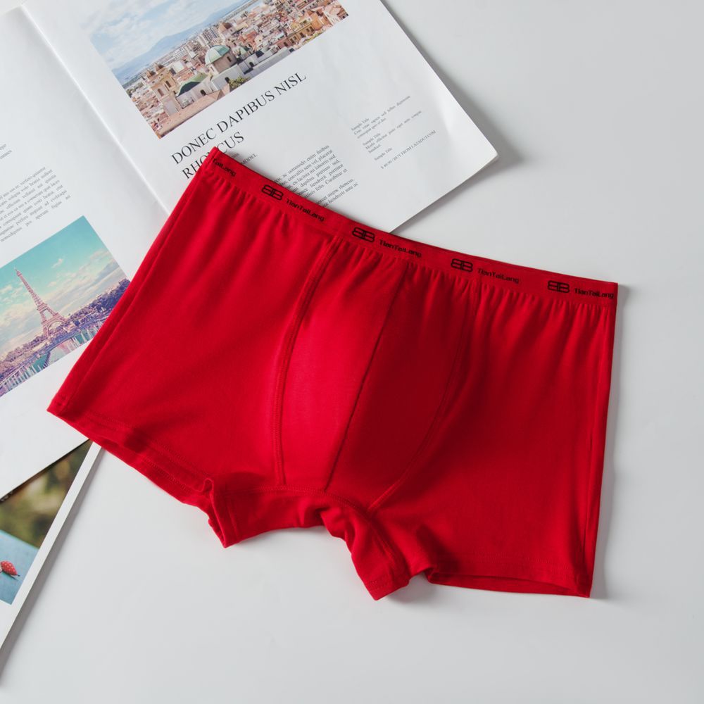 满4条包邮 内裤男竹纤维全棉平角内裤莫代尔纯棉本命年大红短裤衩