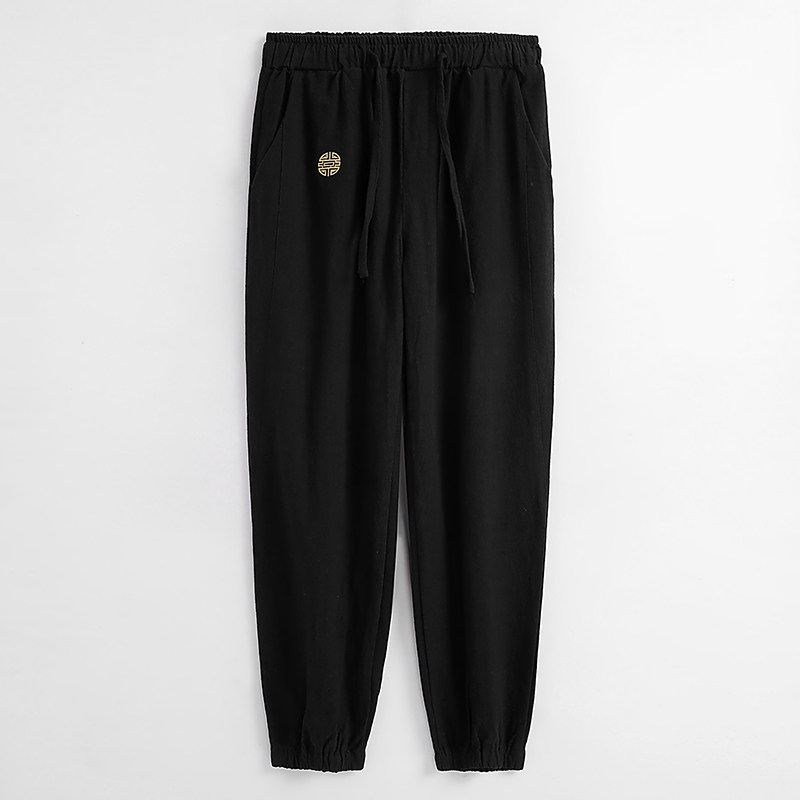 麻裤男宽松束脚中国风苎麻春季唐装裤子小脚男士休闲宽松九分裤男