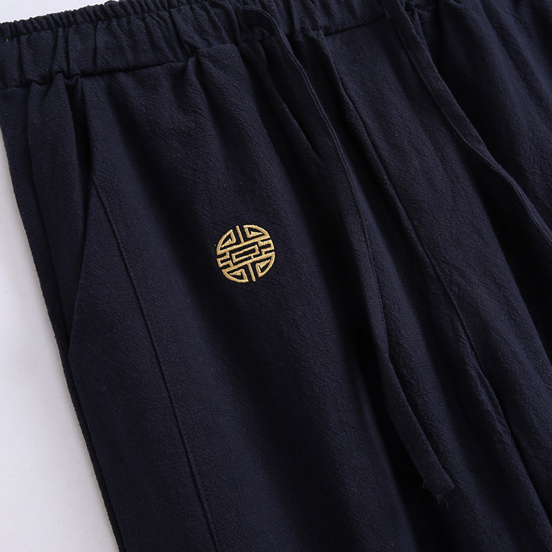 麻裤春季唐装小脚男士休闲宽松