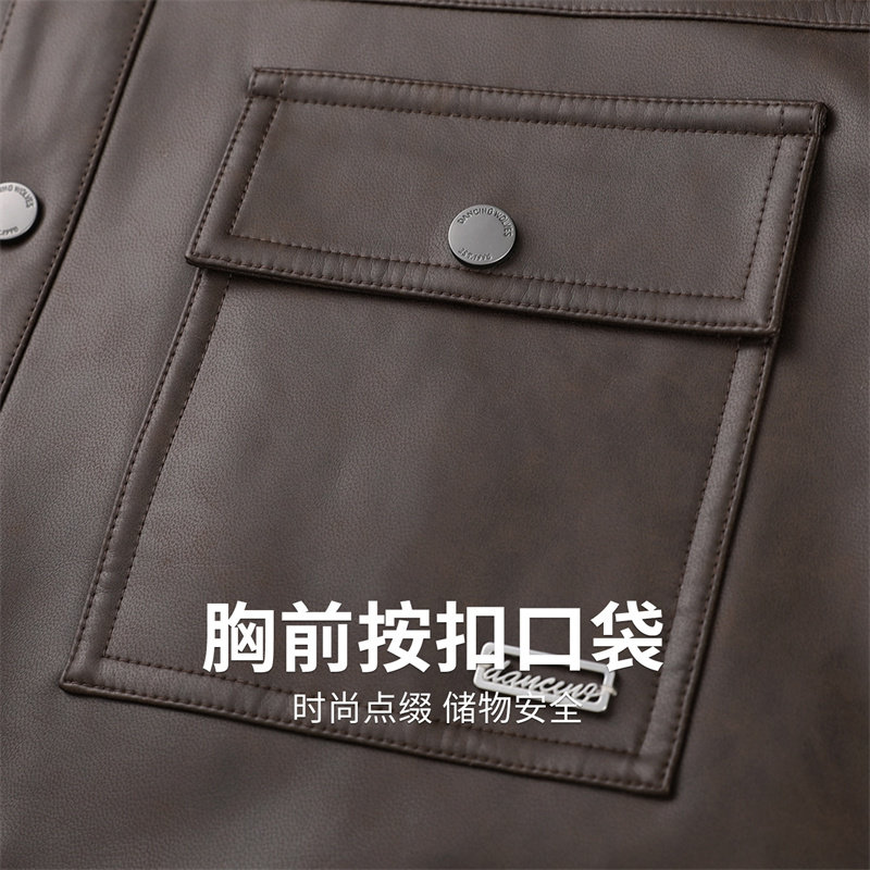【夹棉】与狼共舞翻领皮夹克男士2025秋冬新款pu皮衣休闲保暖外套