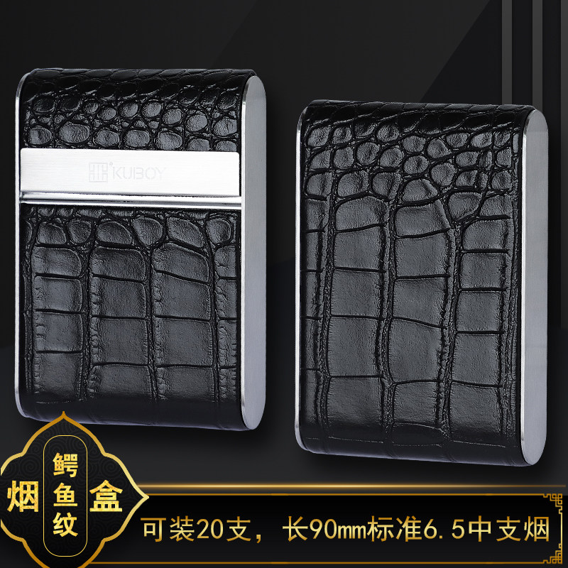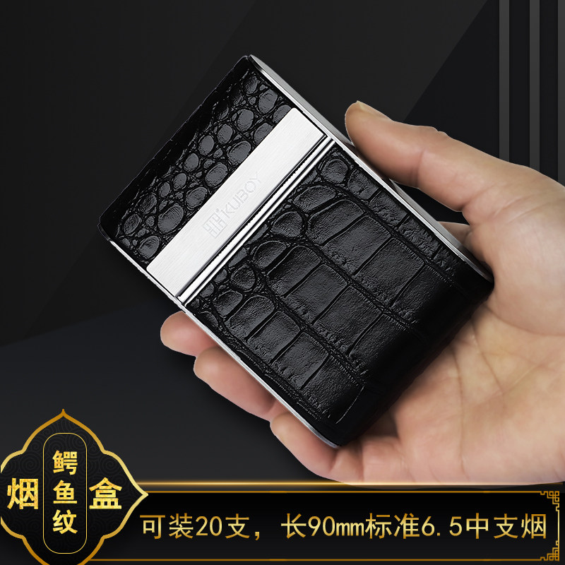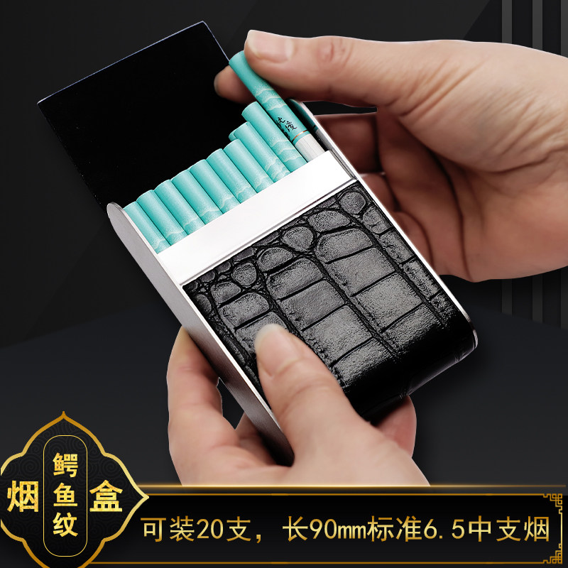 鳄鱼纹6.5mm中支皮烟盒20支装便携男高档个性防压金属自卷香烟盒