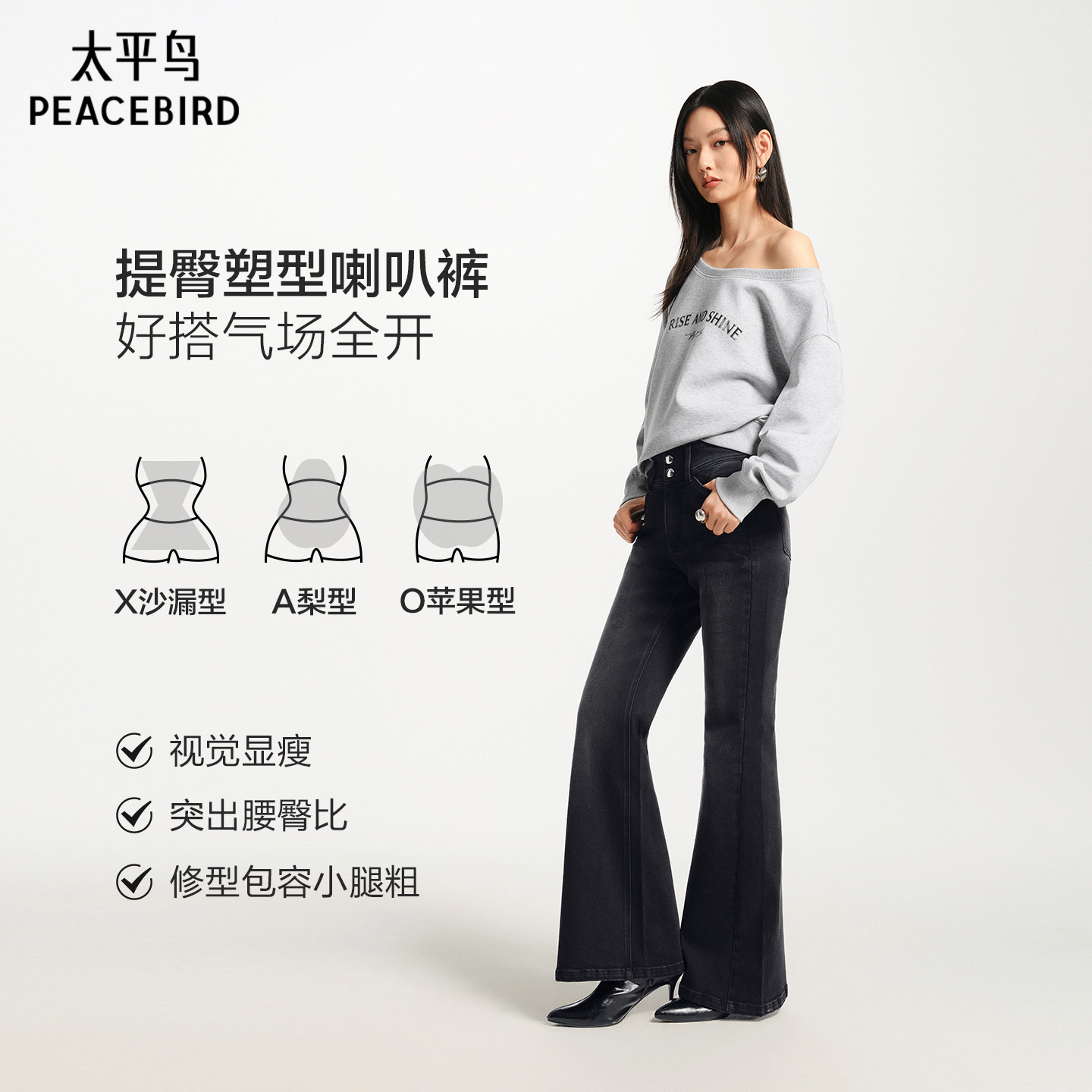 飒飒喇叭裤太平鸟商场同款26春款复古阔腿微喇牛仔裤女A3HAG1245
