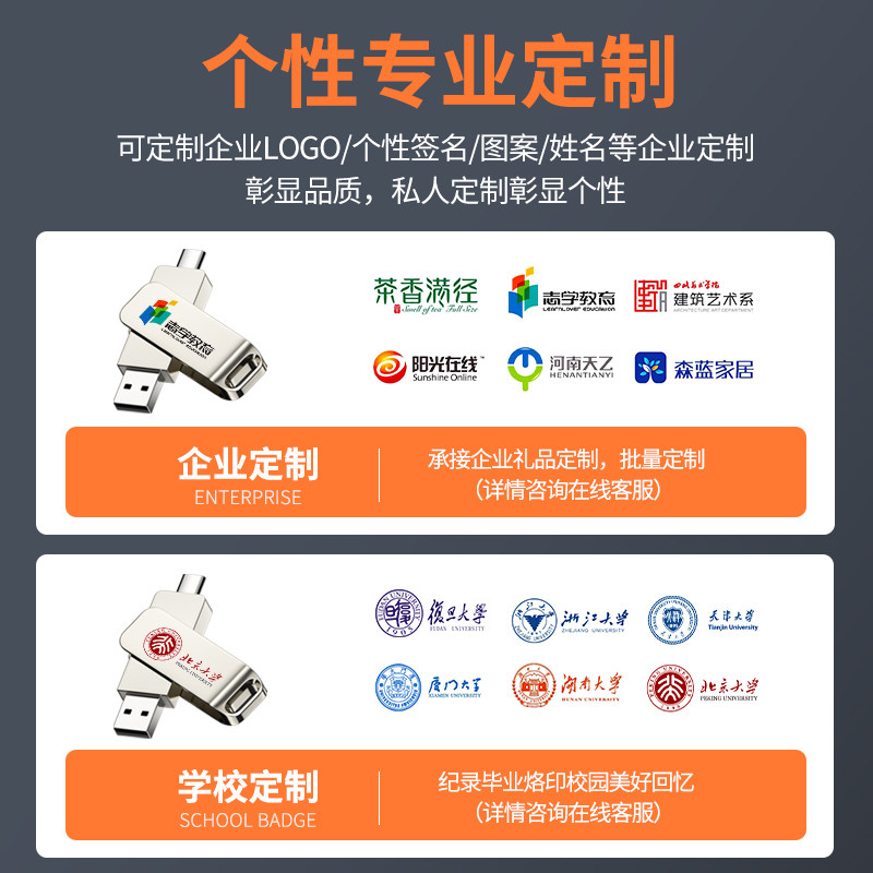 USB3.1高速正品大容量二合一U盘适用苹果华为手机U盘刻字定logo