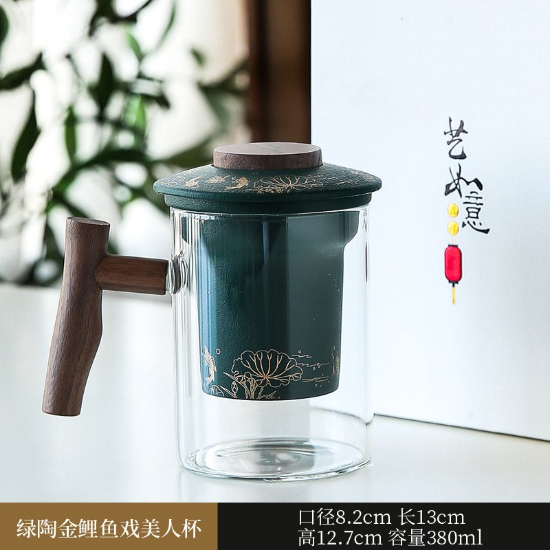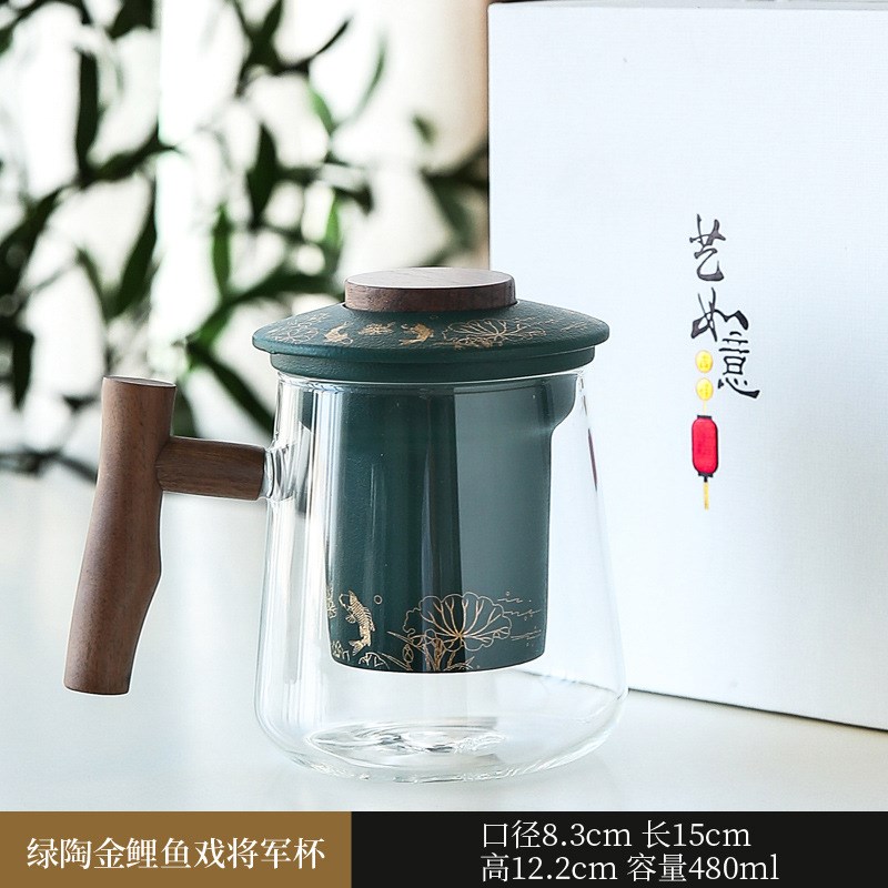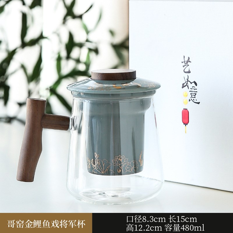 陶瓷玻璃过滤马克杯茶水分离办公泡茶杯三件套商务X伴手礼品