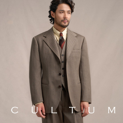 【1930s 530g重70羊毛】CULTUM秋冬复古加厚条纹西服套装男三件套