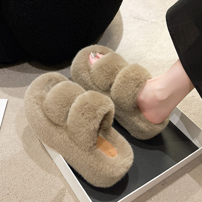 2025秋冬新款小个子松糕厚底增高毛绒茸茸棉拖鞋女外穿居家毛毛鞋