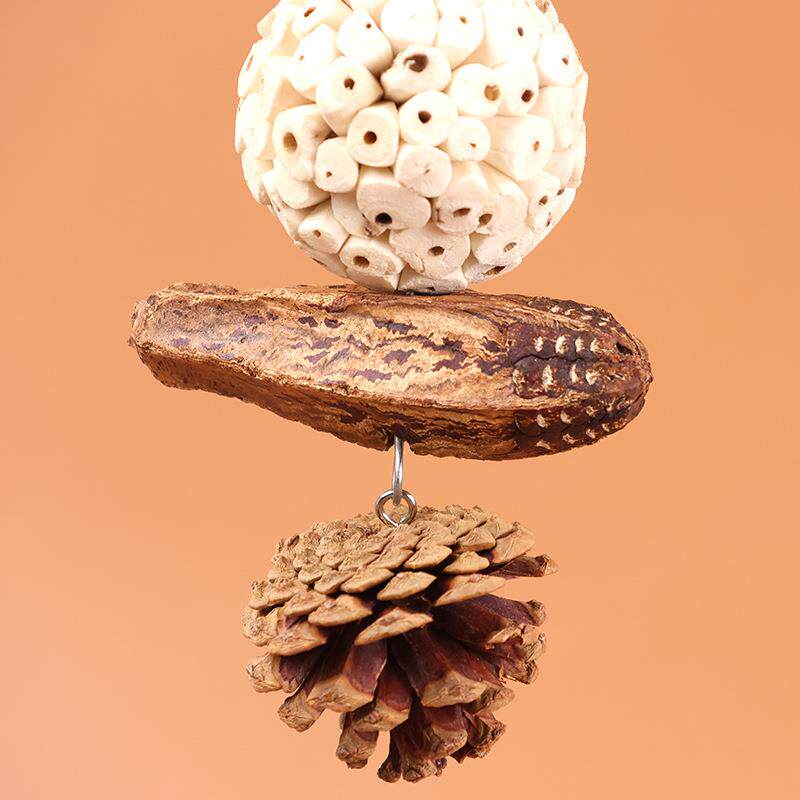 鹦鹉通草球串 天然果实坚果啃咬鸟玩具杨桃松果鹦鹉解压解闷玩具
