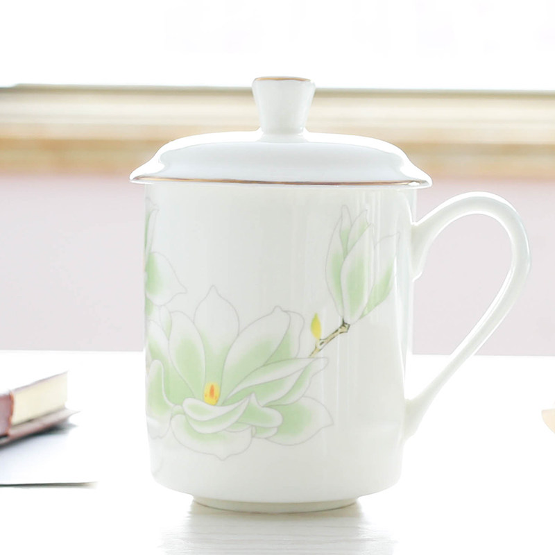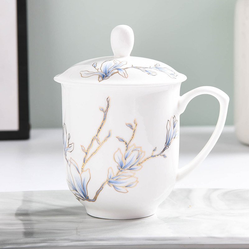 莹辰达唐山产地骨瓷马克杯家用带盖水杯办公杯可爱咖啡杯茶杯水杯