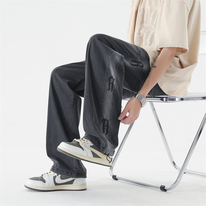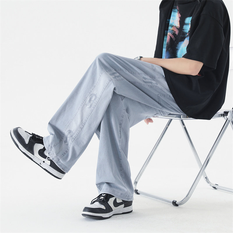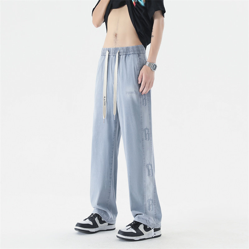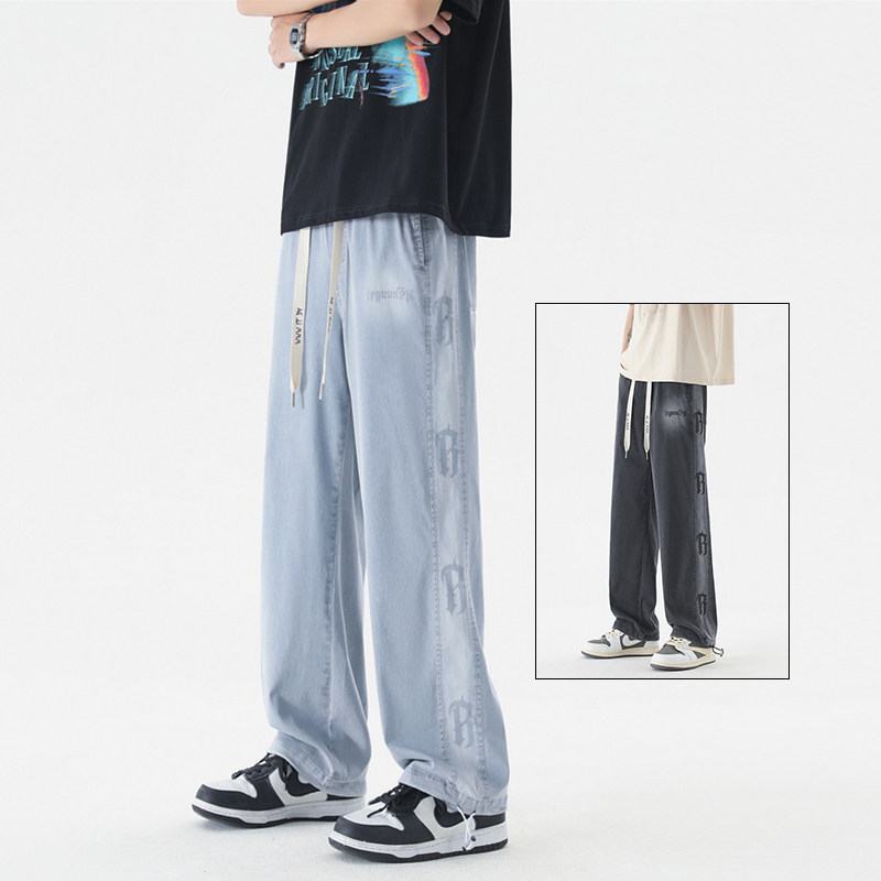 2025冰丝夏季新款青少年潮流百搭男裤学生大童宽松阔腿薄款牛仔裤