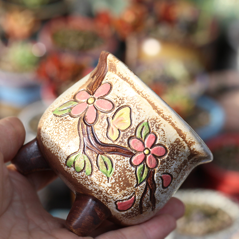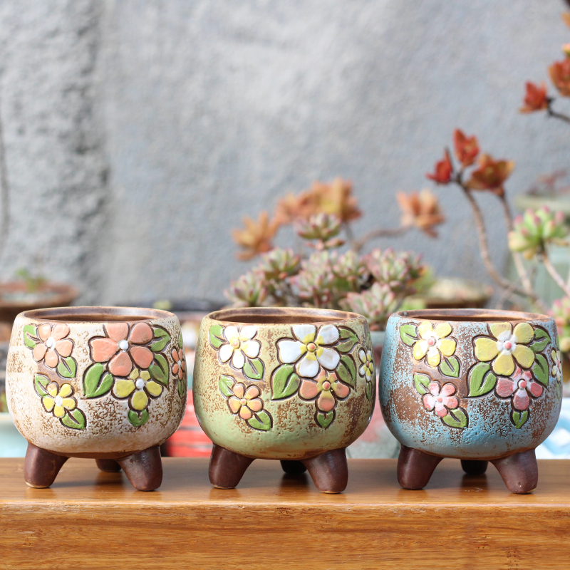 维惟园艺手绘多肉肉植物花盆粗陶韩式简约小号老庄透气拇指盆陶瓷