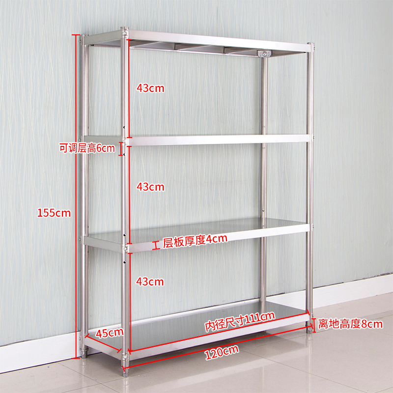 不锈钢4层置物架微波炉3厨房酒店饭店收纳架家用阳台货架加厚定做