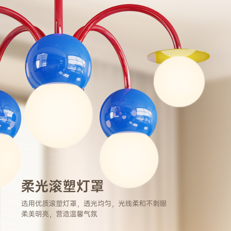 球形马卡龙新款护眼儿童房吊灯客厅主灯枝形奶油风孟菲斯卧室吊灯