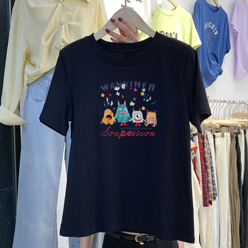 卡通白色学生短袖t恤女2025夏季新款正肩宽松减龄上衣纯棉半袖潮