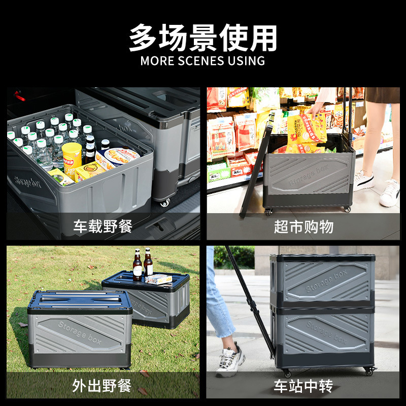 户外露营带滑轮拉杆收纳箱可折叠拖车整理箱车载透明侧开门储物