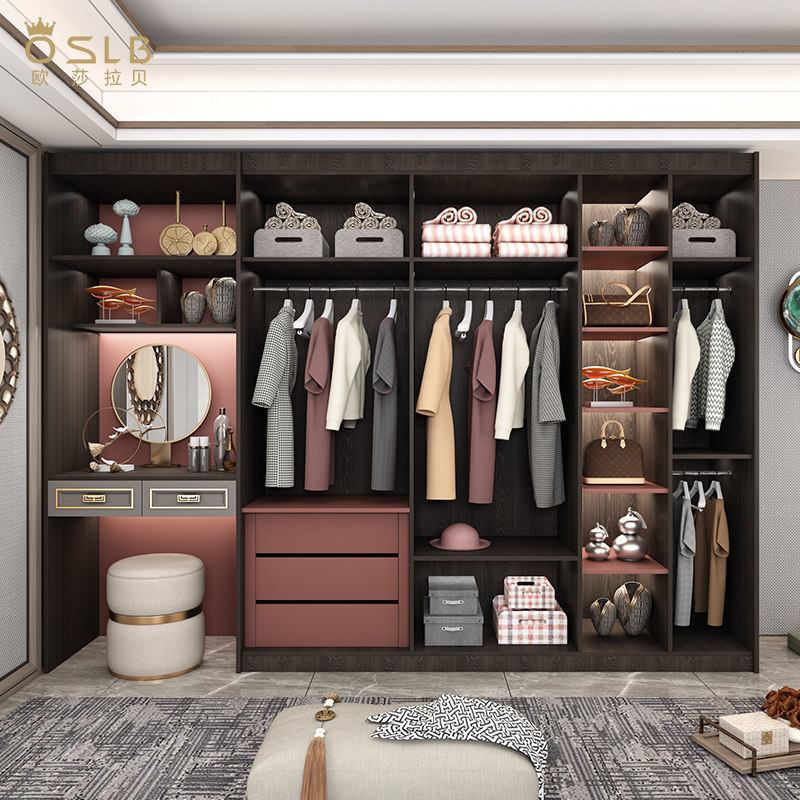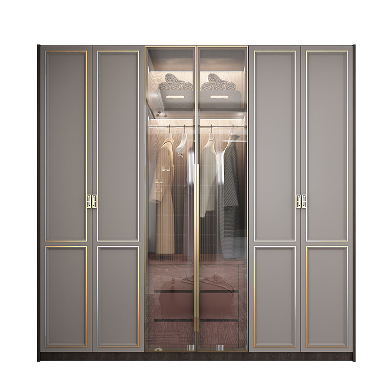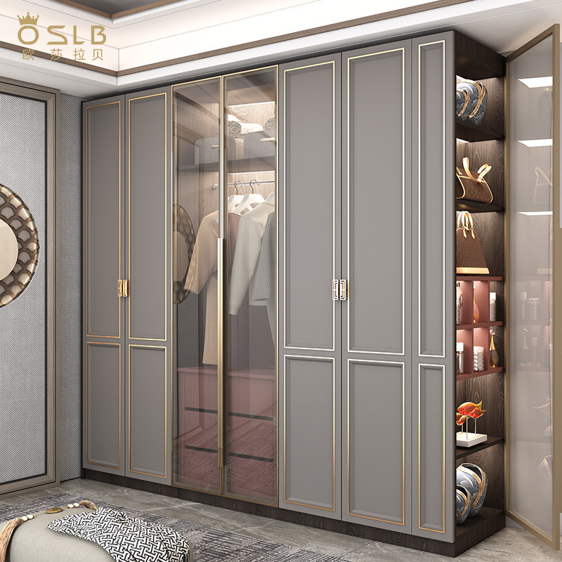 美式衣帽间衣柜轻奢家用卧室新中式整体组合实木平开门大衣橱定制