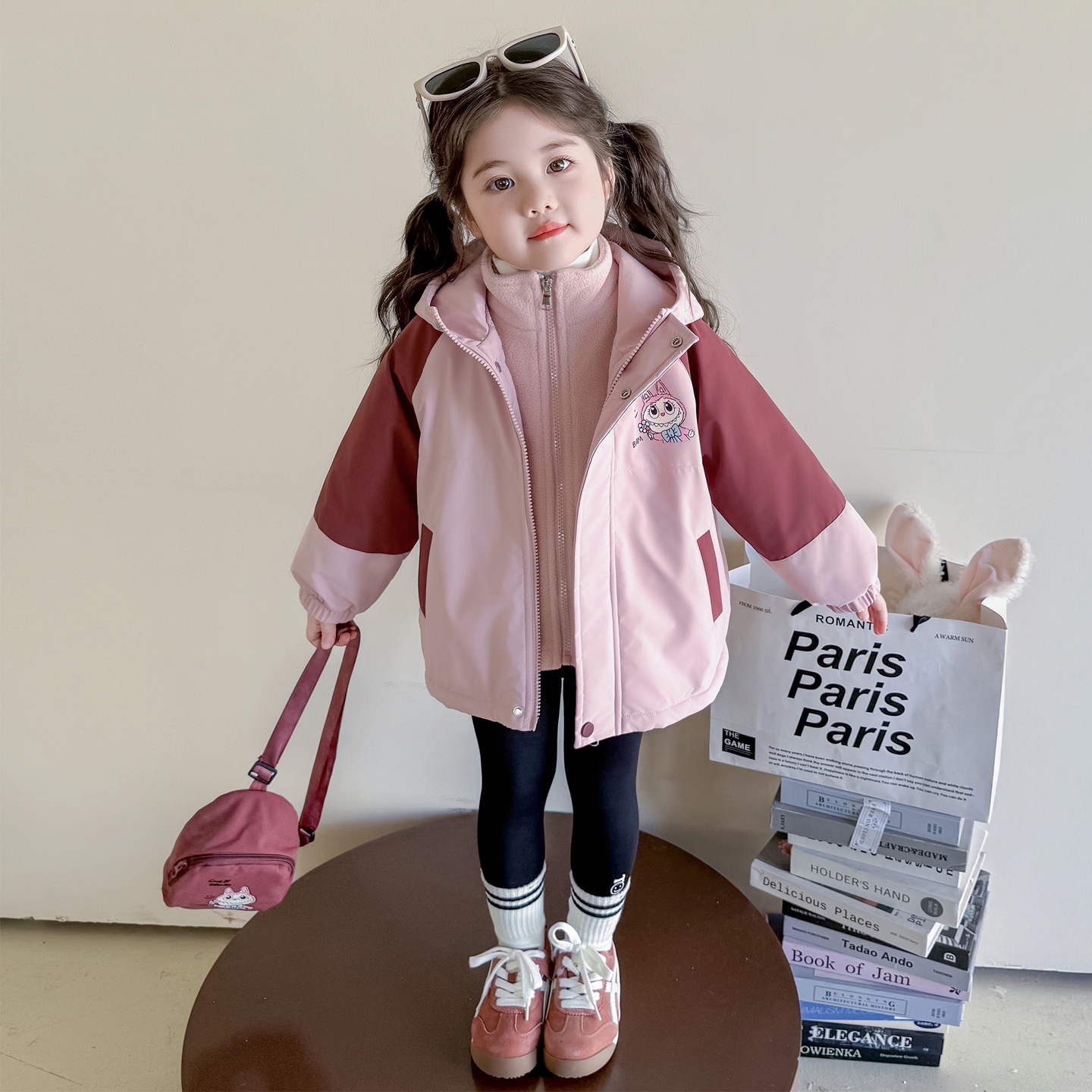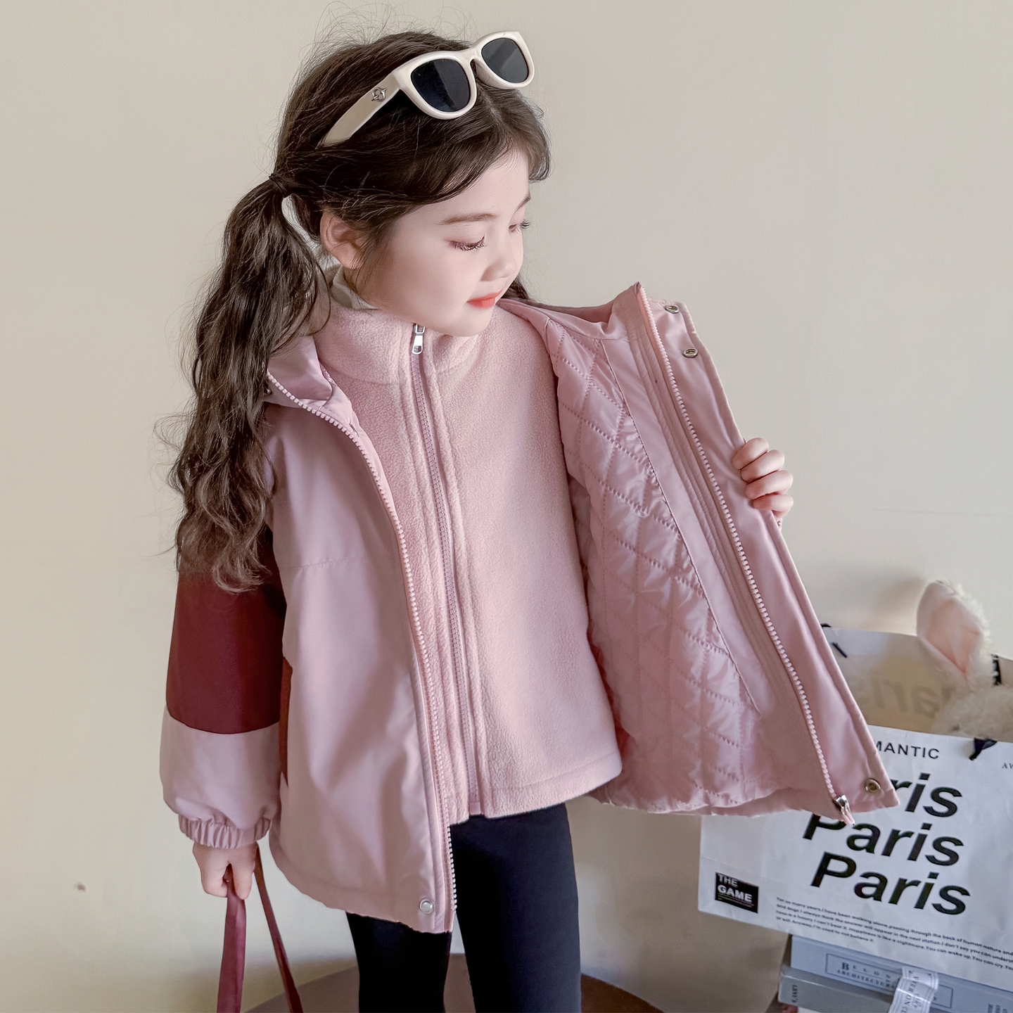 女童夹棉冲锋衣外套三合一可拆卸