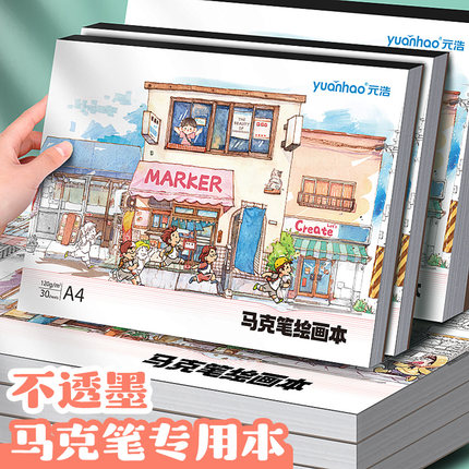 元浩儿童丙烯马克笔专用绘画本a4涂色不透色小学生美术幼儿园画画本a5马克本8K图画本空白手绘一年级加厚A3