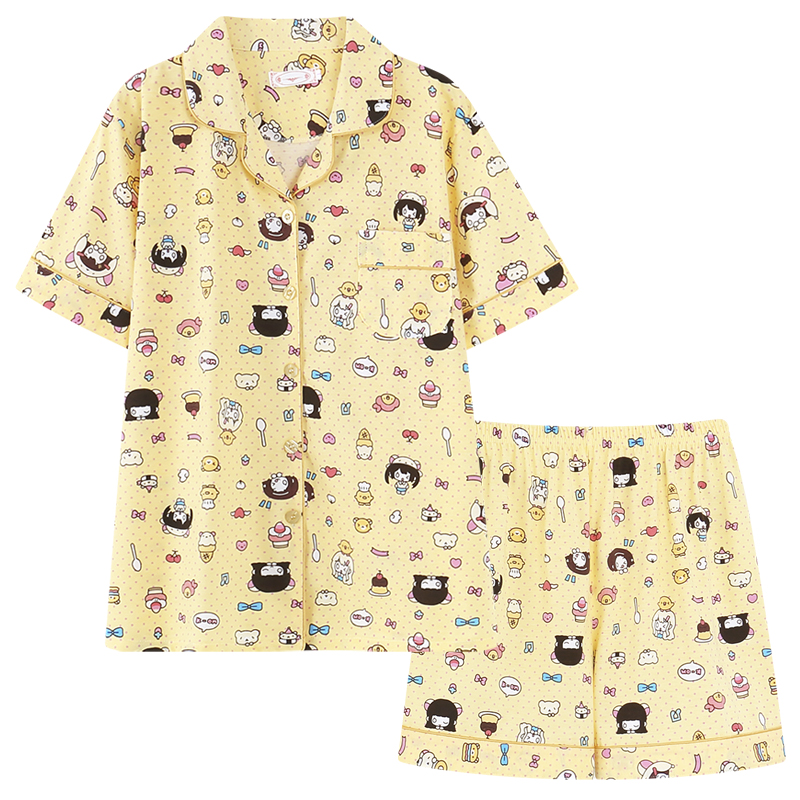 二次元动漫轻音少女睡衣女夏季纯棉短袖短裤学生卡通饼干熊家居服