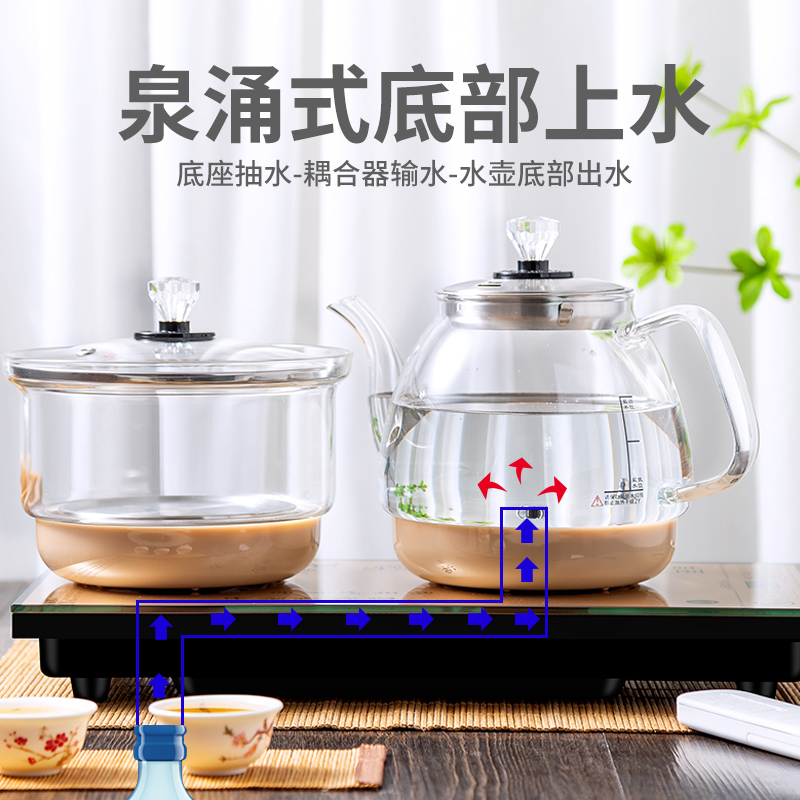 至异遥控全自动底部上水玻璃烧水壶自动电热水壶家用抽水功夫茶具