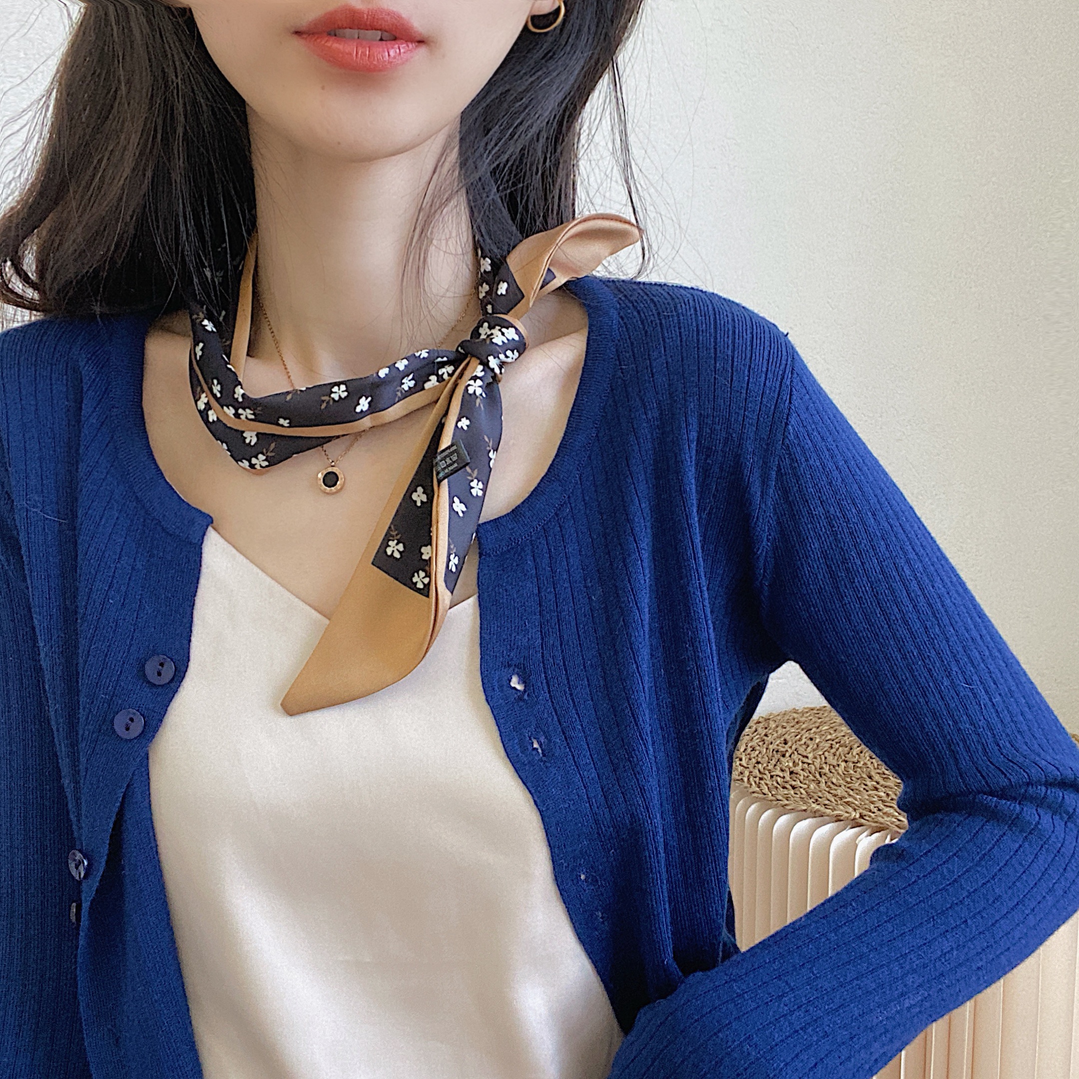 卡其色丝巾小长条女新款春季洋气时尚装饰包丝带搭配衬衫百搭围巾