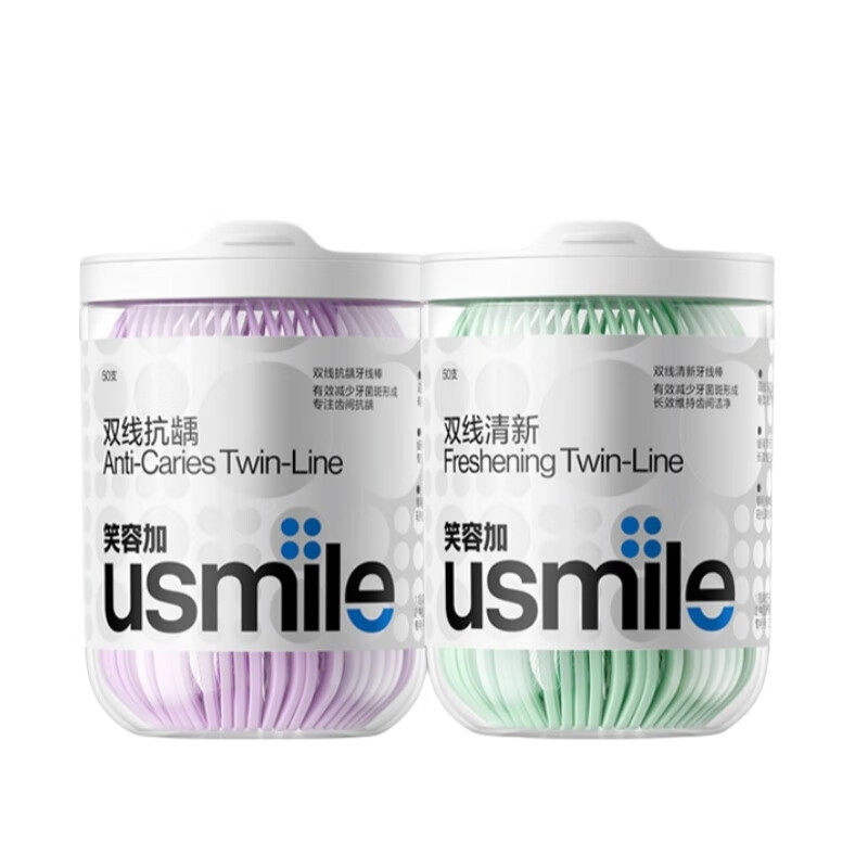 笑容加usmile双线清新牙线棒超细牙线牙签便携家庭装盒装便携袋装