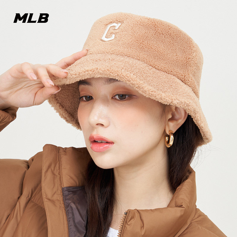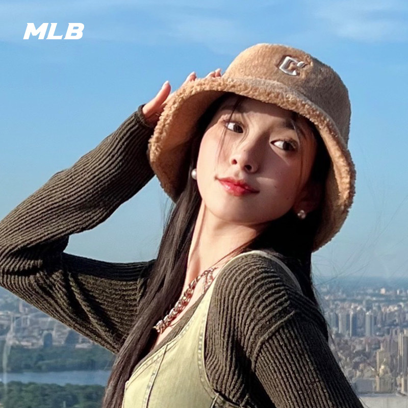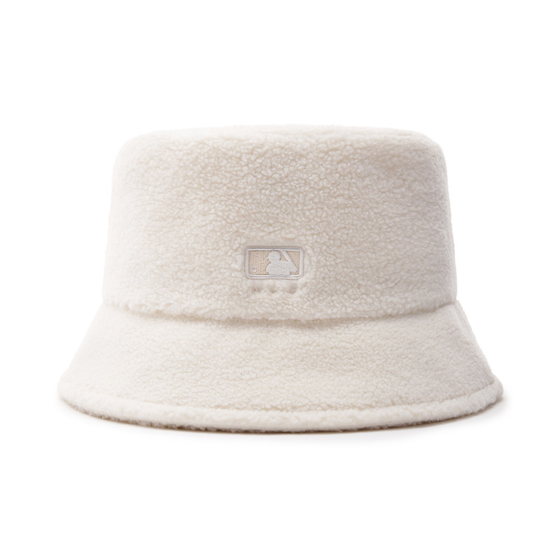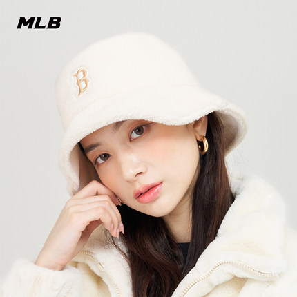 MLB官方 男女情侣小logo仿羊羔绒渔夫帽遮阳休闲冬季HTF01