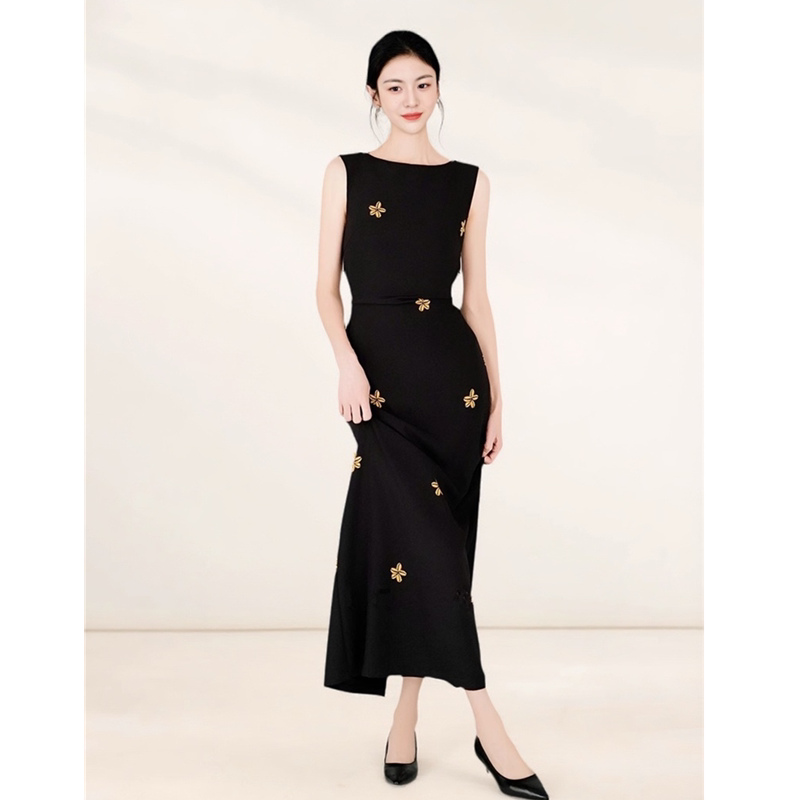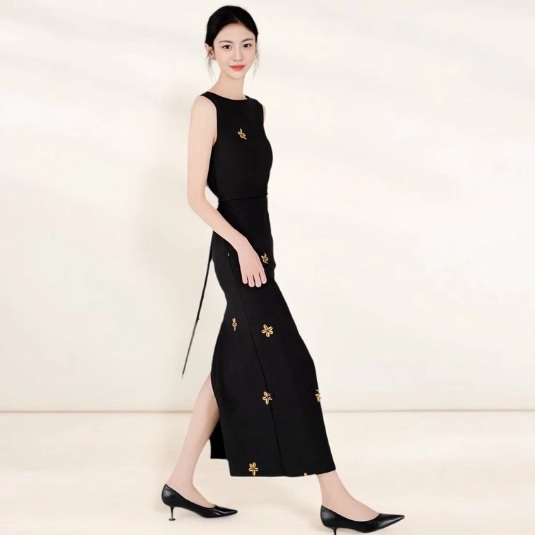黑色连衣裙女小个子无袖中长裙