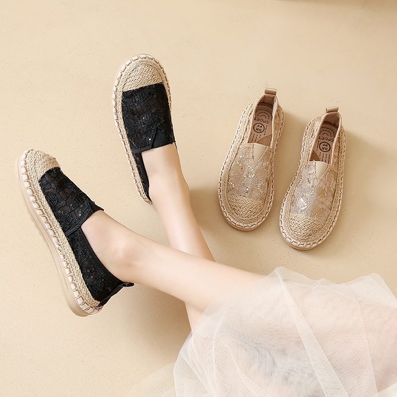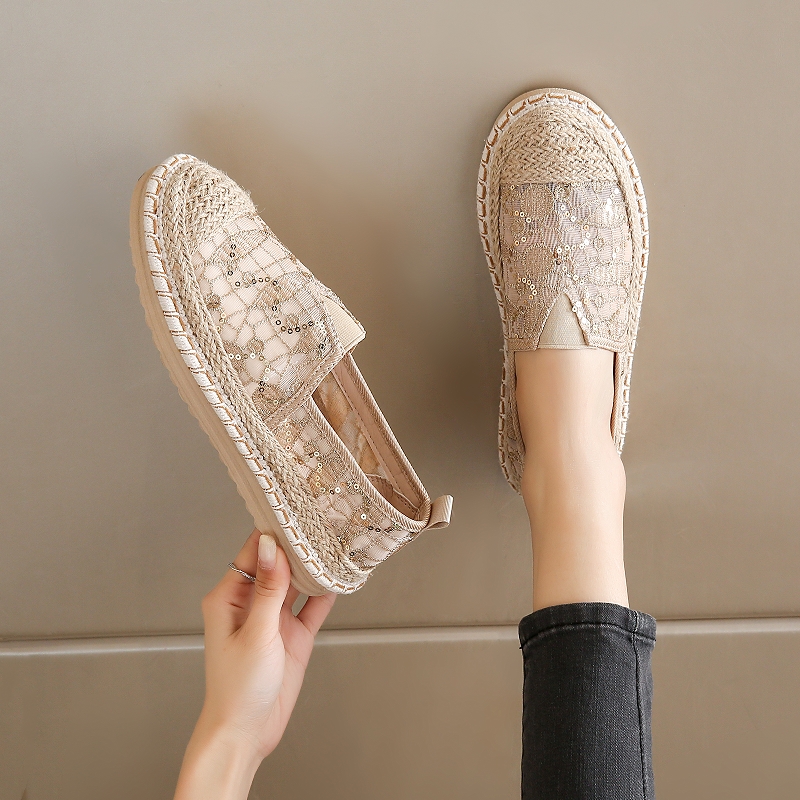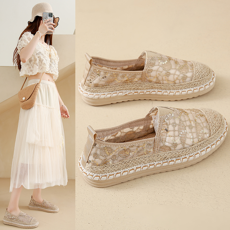 女鞋小香风渔夫鞋2025新款夏季一脚蹬软底老北京布鞋孕妇平底网鞋