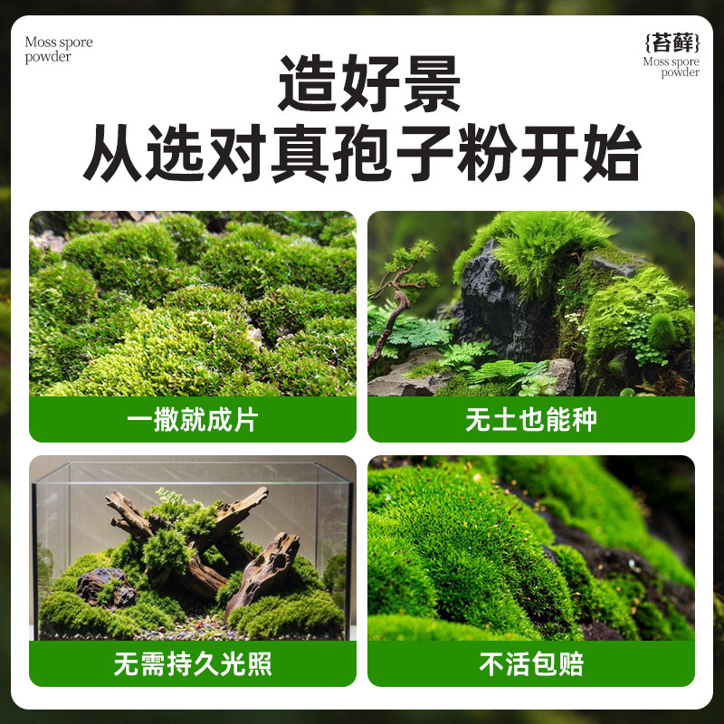 苔藓孢子粉绿植地毯鲜活青苔永生苔藓种子草籽吸水石微景观假山上