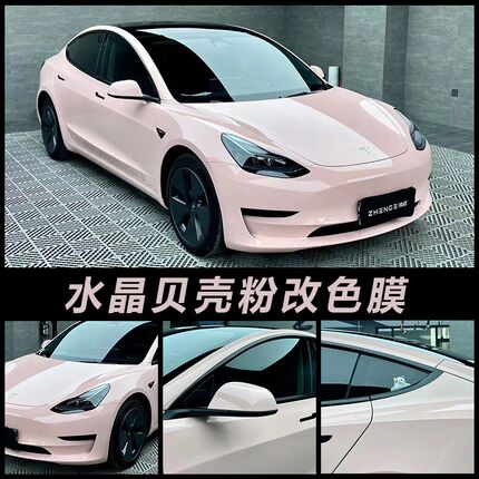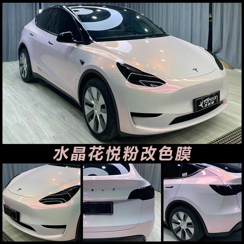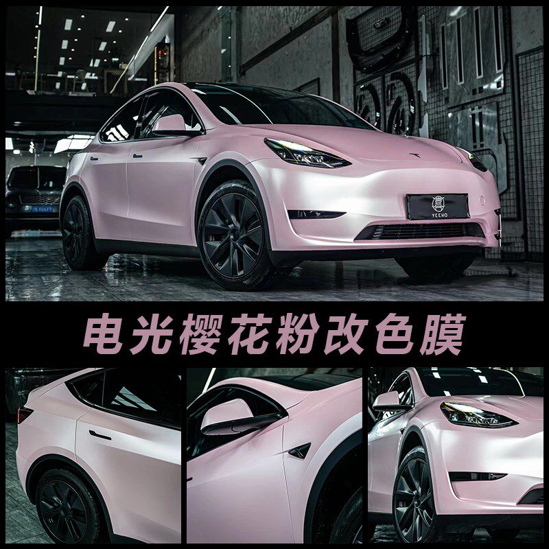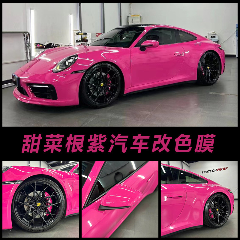 甜菜根紫汽车改色膜全车身亮光面水晶樱花粉色贴膜电动摩托车贴纸