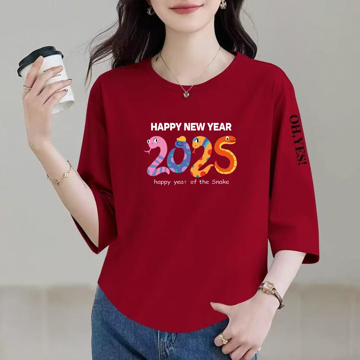 清仓捡漏外贸妈妈装本命年过年气质显瘦圆领洋气七分袖上衣打底衫