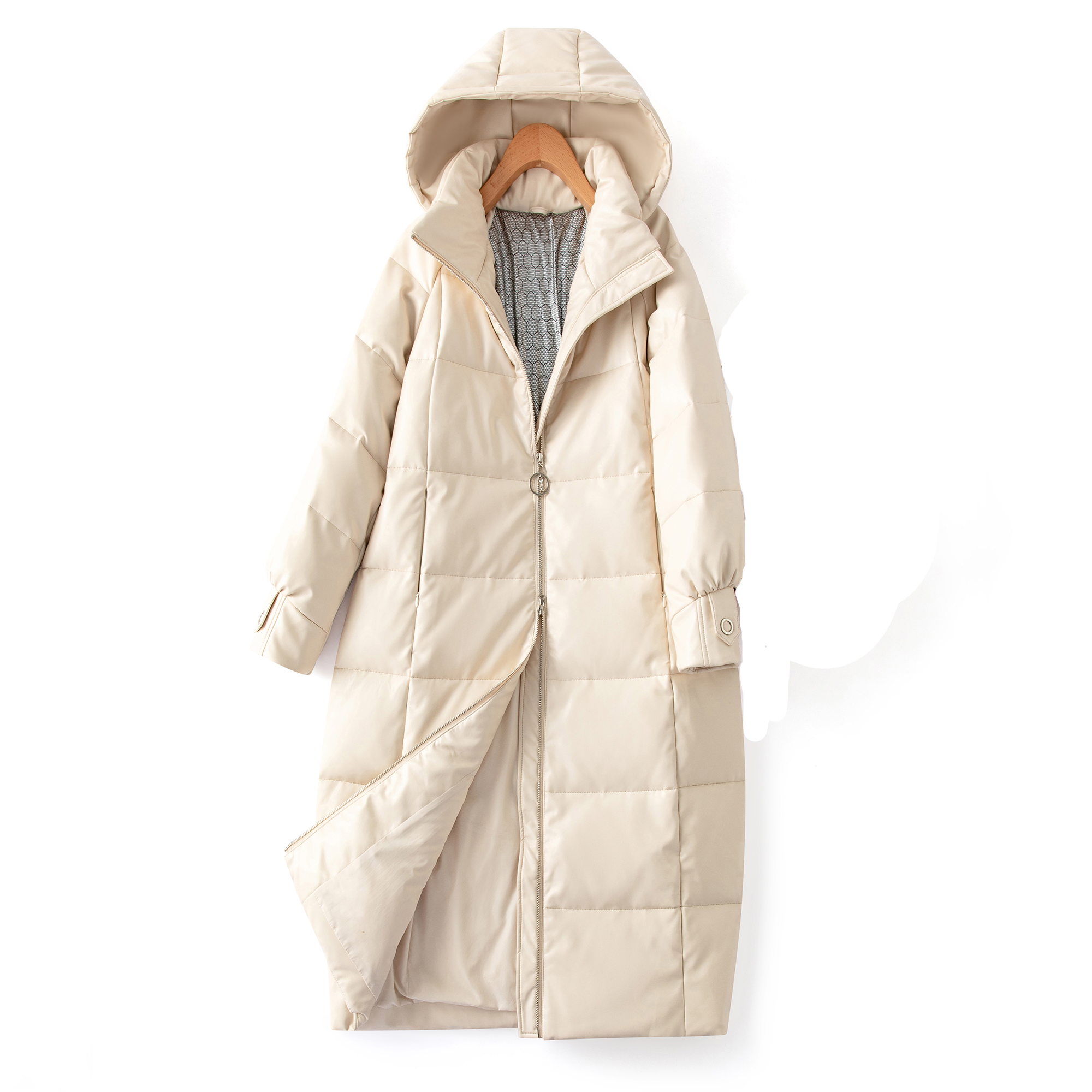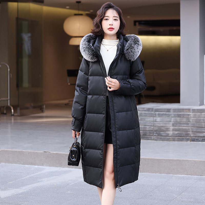 海宁真皮羽绒服女中长款绵羊皮2025冬新款狐狸毛领皮衣白鸭绒外套