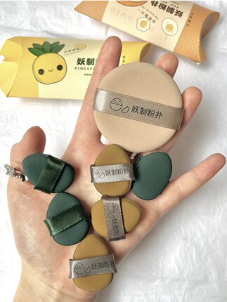 迷你手指!妖制迷你粉扑气垫粉底液蛋黄派菠萝干湿两用脸部粉饼