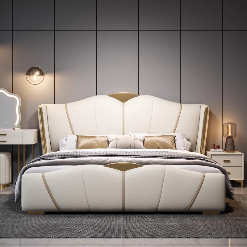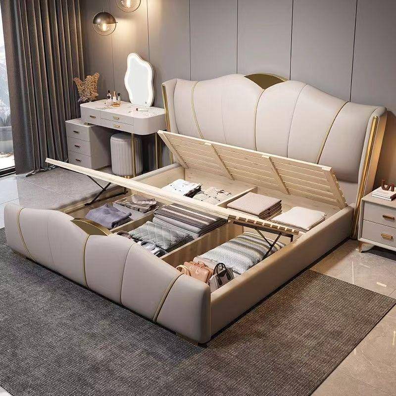 轻奢现代真皮床1.8米简约双人床2米x2.2主卧大床意式极简储物婚床