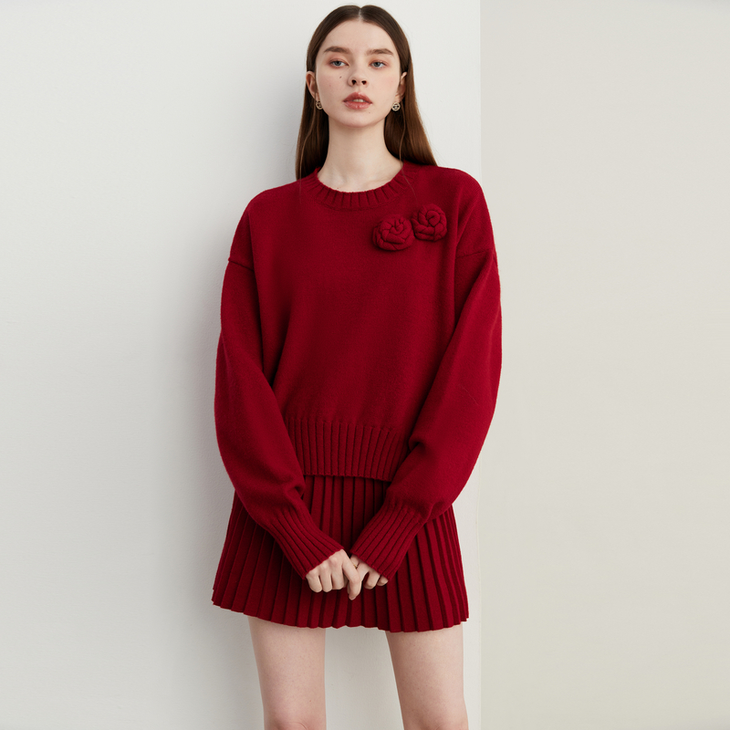 DPLAY2025秋季新款红色套装红色毛衣短裙针织套装半身裙女2件套