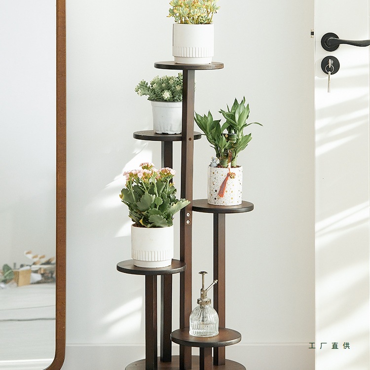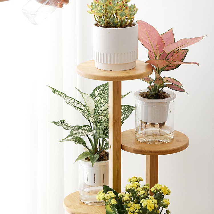 花架置物架阳台绿萝多肉花盆架楠竹多层带轮子花架子客厅落地式