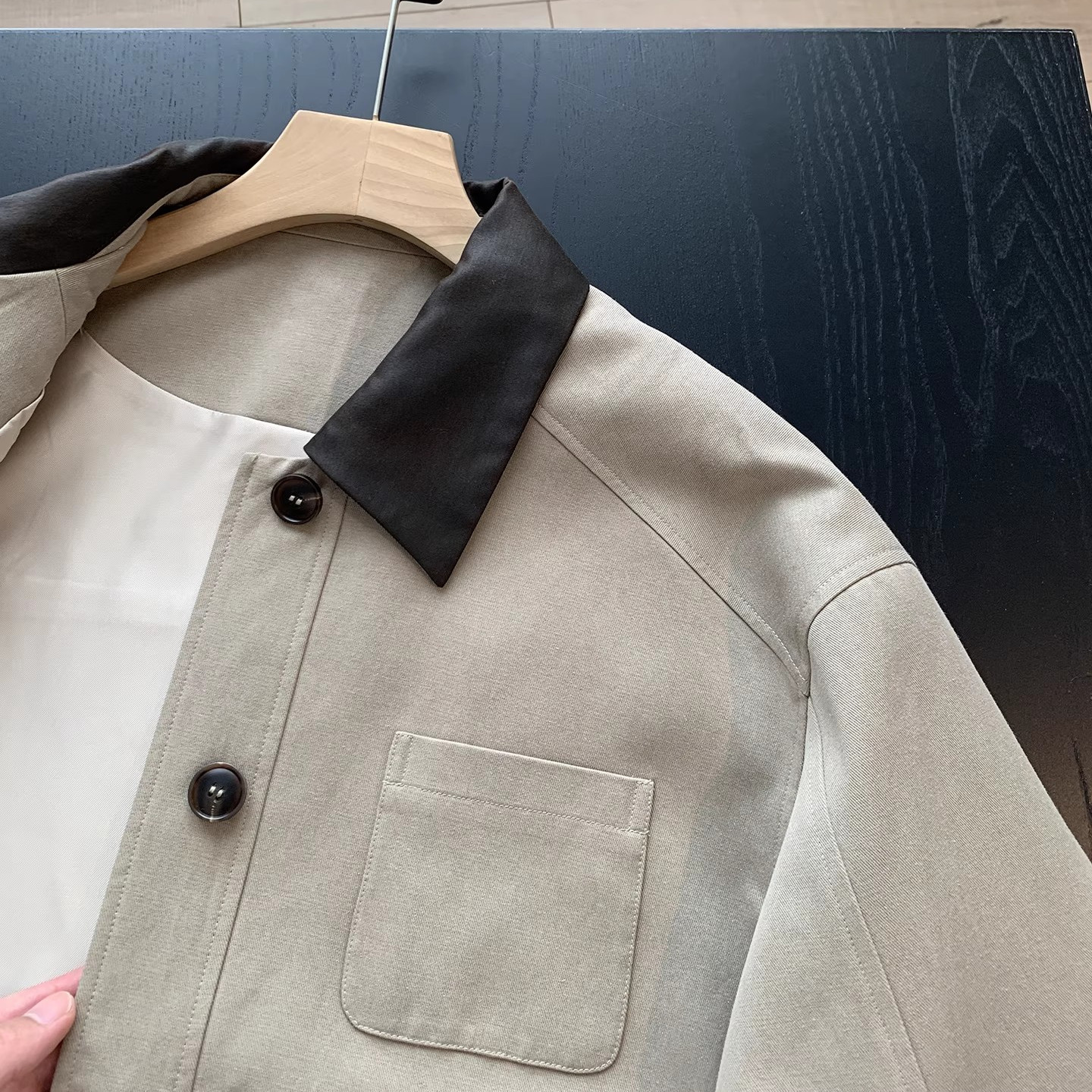 【柏林纪事】拼色领秋冬短款风衣外套复古风上衣