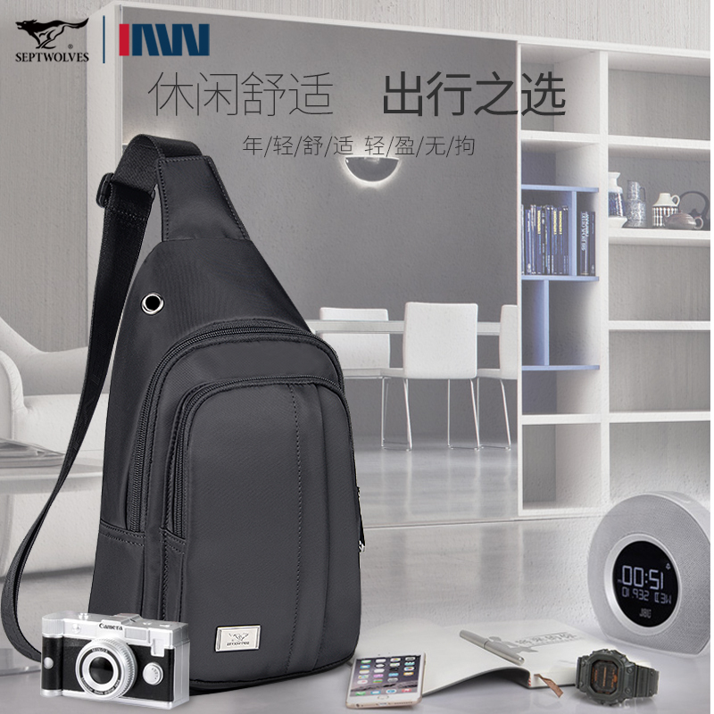 七匹狼男斜挎胸包防水背包休闲多功能父亲节生日时尚男士包单肩包
